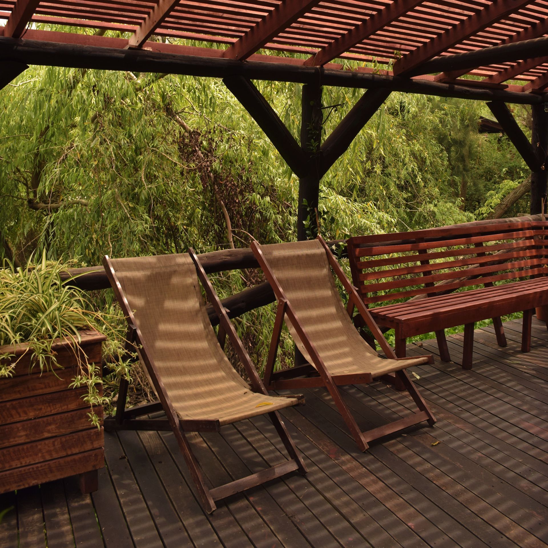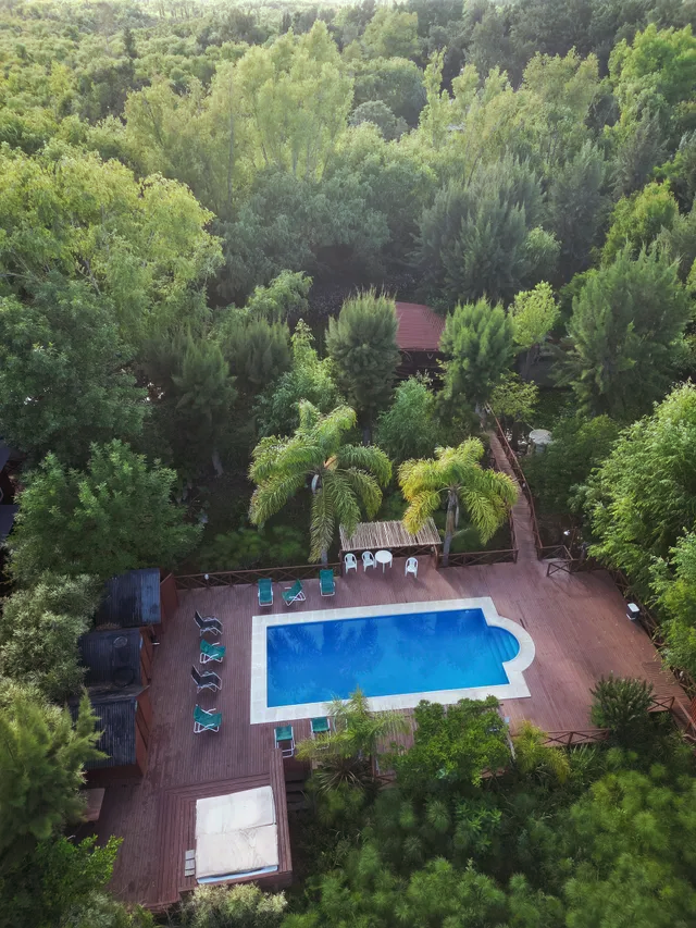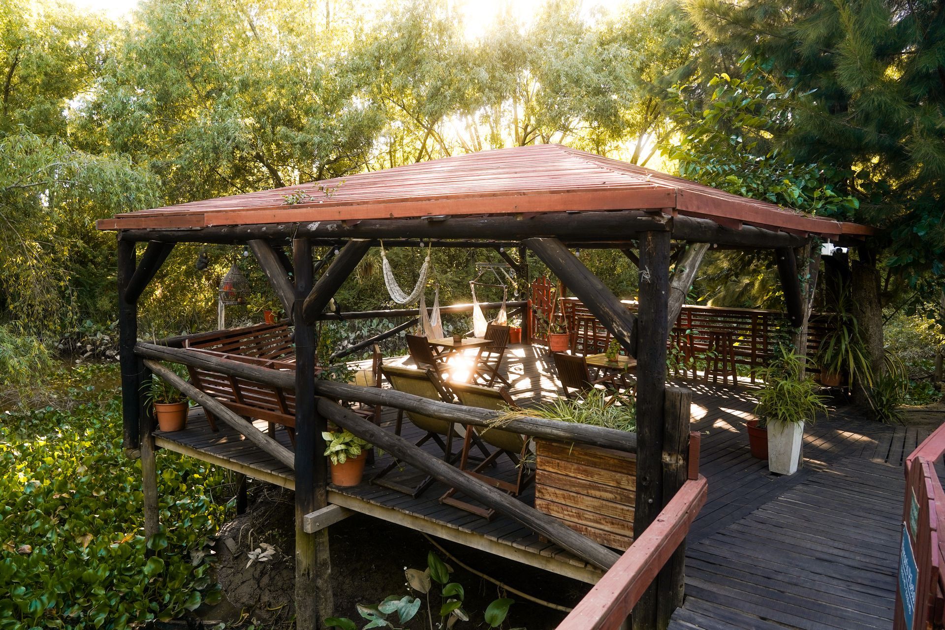 Despertar en la tranquilidad de la isla y desayunar en el deck privado de tu cabaña, con vista al cuidado jardín o al arroyo. Caminar por las pasarelas elevadas hasta el quincho, disfrutar de la naturaleza, refrescarte en la pileta y ver el atardecer en el muelle sobre el Río Sarmiento.