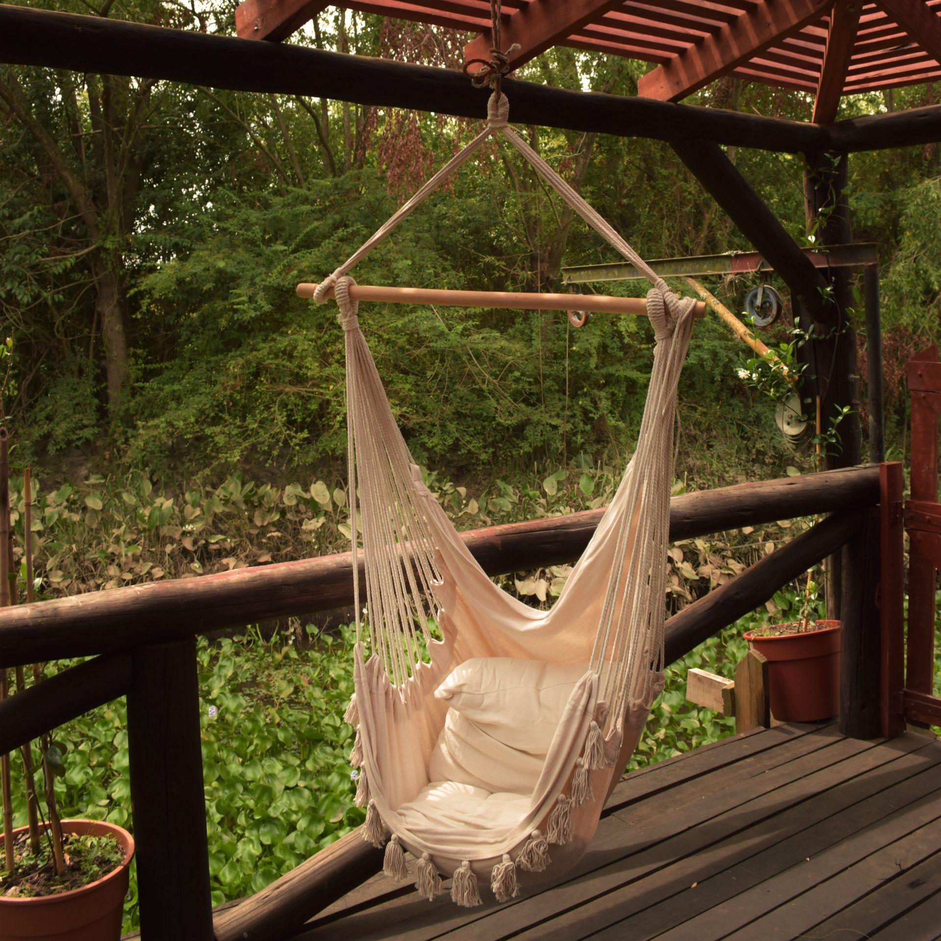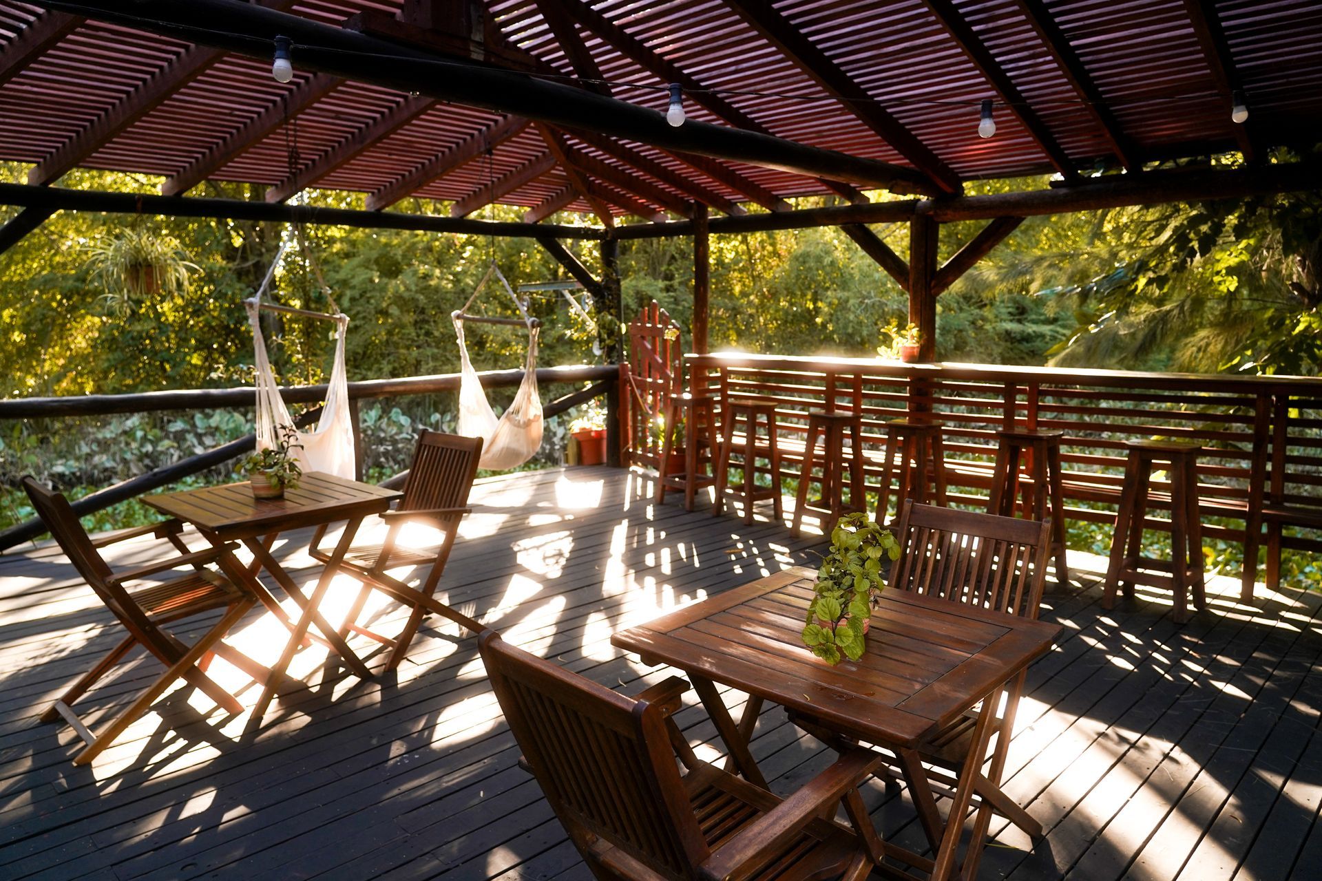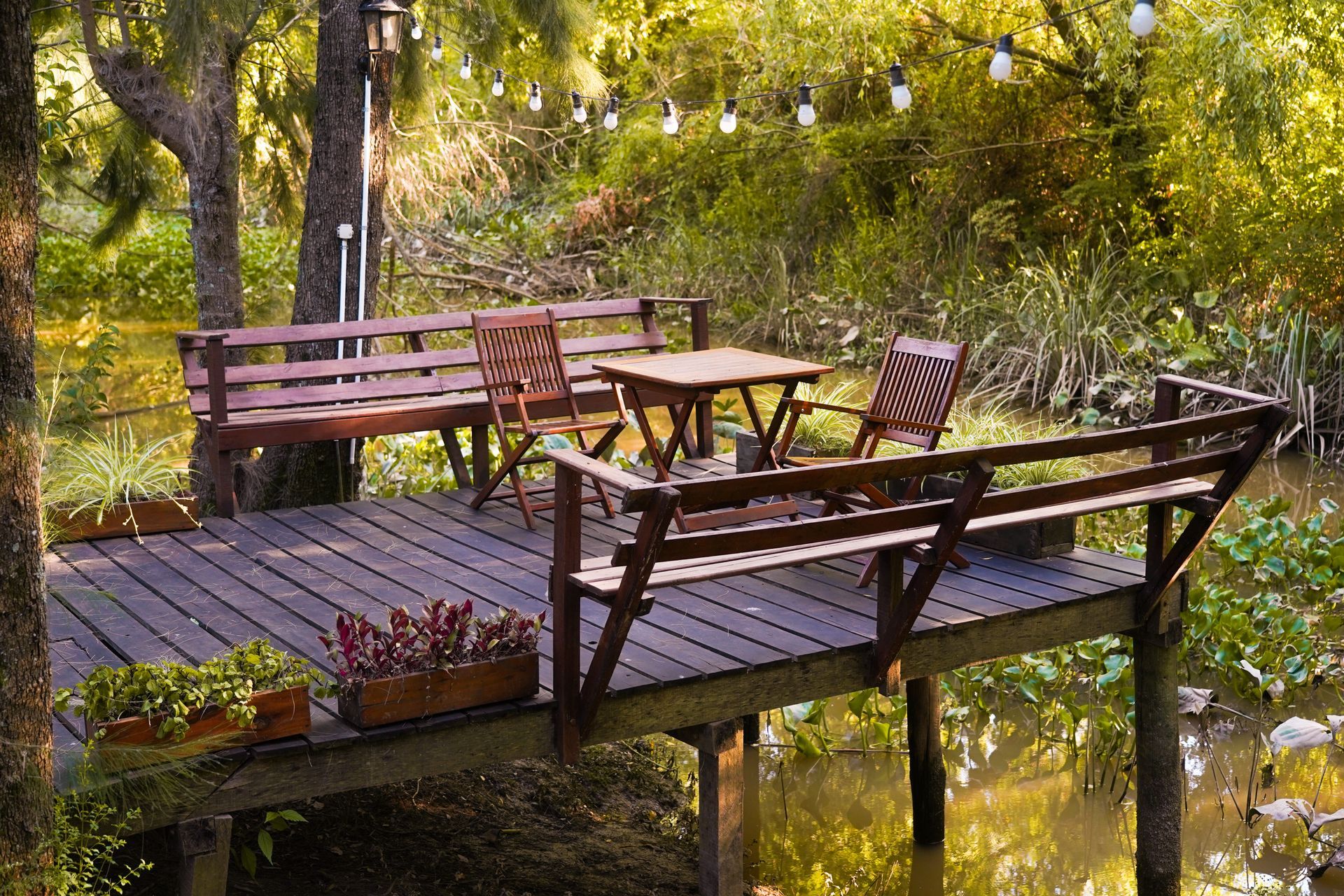 Despertar en la tranquilidad de la isla y desayunar en el deck privado de tu cabaña, con vista al cuidado jardín o al arroyo. Caminar por las pasarelas elevadas hasta el quincho, disfrutar de la naturaleza, refrescarte en la pileta y ver el atardecer en el muelle sobre el Río Sarmiento.